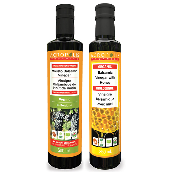 The pack also includes Honey Balsamic Vinegar, made from a mixture of grape must and organic red wine vinegar aged in oak barrels along with local honey that comes from bees that gather nectar from flowers and thyme bushes on the island of Crete. The balsamic vinegar is mixed with the perfect proportion of honey for a taste that’s not too tart or too sweet.