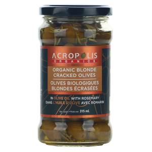 Organic Cracked Blonde Olives in EVOO with Rosemary